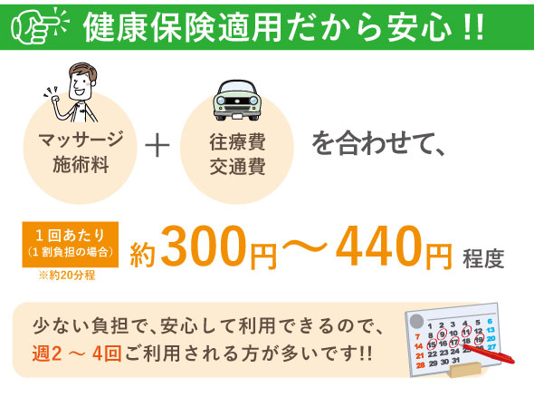 訪問マッサージ「わかちゃん健康院」は健康保険が利用できるので、一部負担の少ない費用でご利用頂けます!